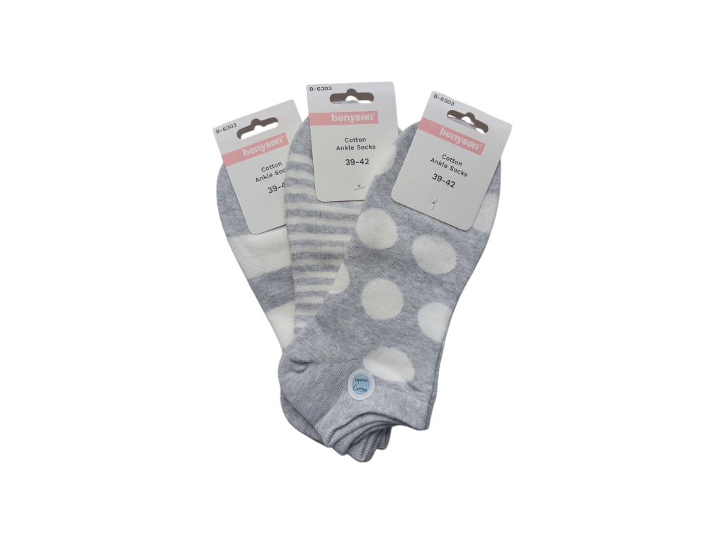 Dámské kotníkové ponožky, 3pack - puntík/proužek IV. | BENYSON®