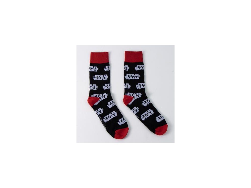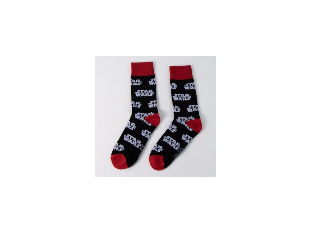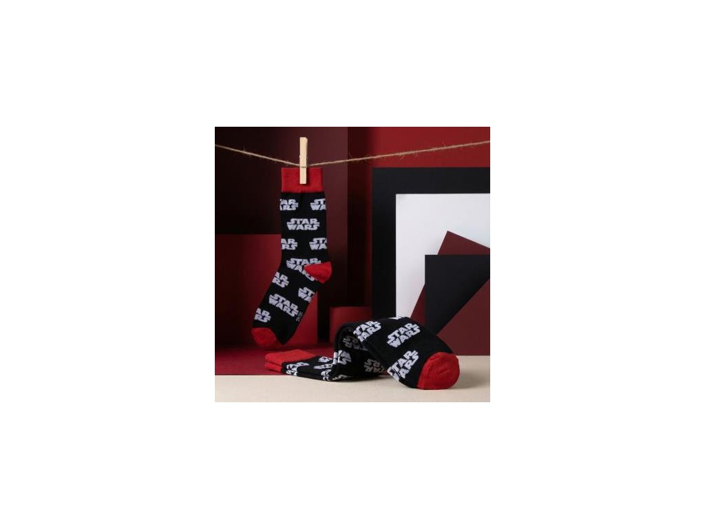 Pánské ponožky Star Wars v černé barvě s červenou patou a špicí působí jako výrazný, ale stále elegantní doplněk pro každodenní nošení.